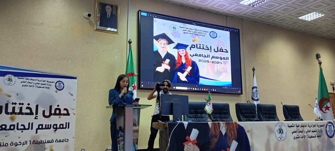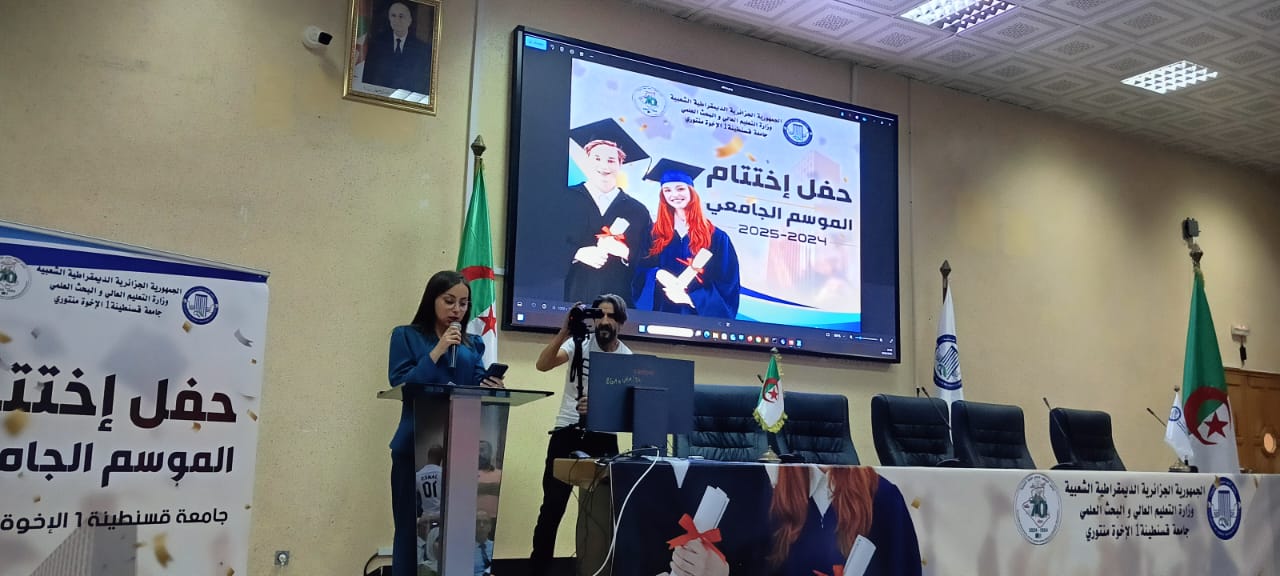 مشاركة كلية الحقوق في حفل اختتام السنة الجامعية 2024-2025 الذي نظمتهجامعة قسنطينة 1 – الإخوة منتوري، حفلاً مميّزًا بمناسبة اختتام السنة الجامعية 2024 – 2025، وذلك بحضور الطاقم الإداري والبيداغوجي، إلى جانب الطلبة وأوليائهم.