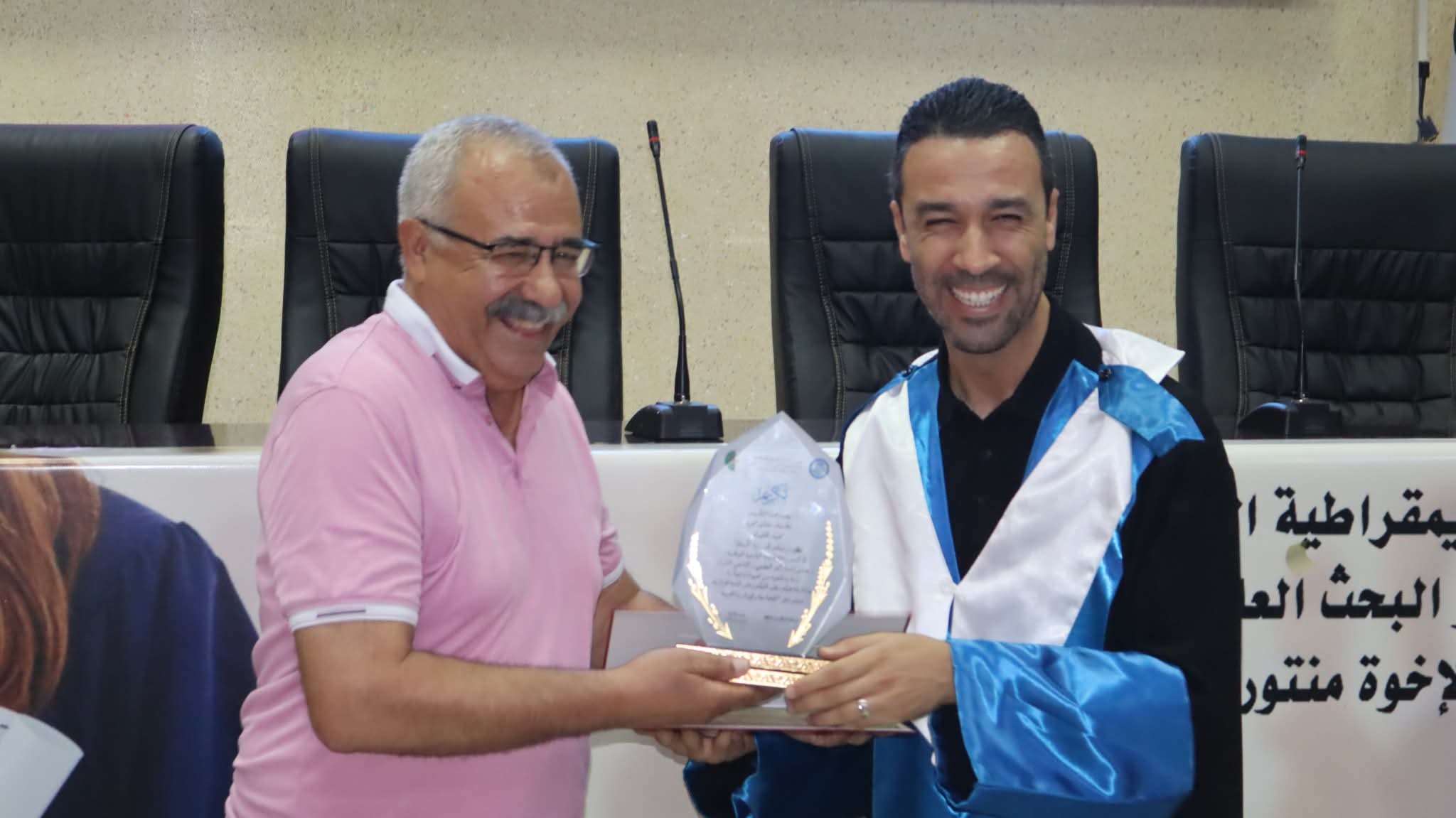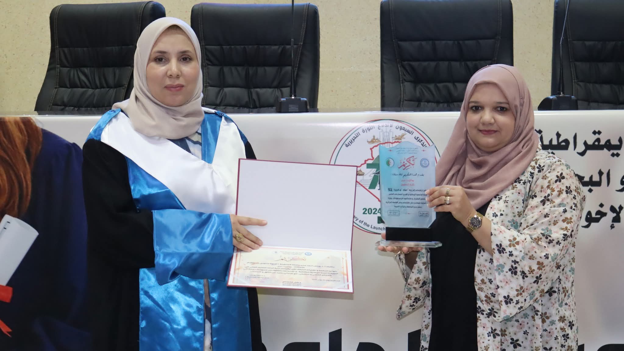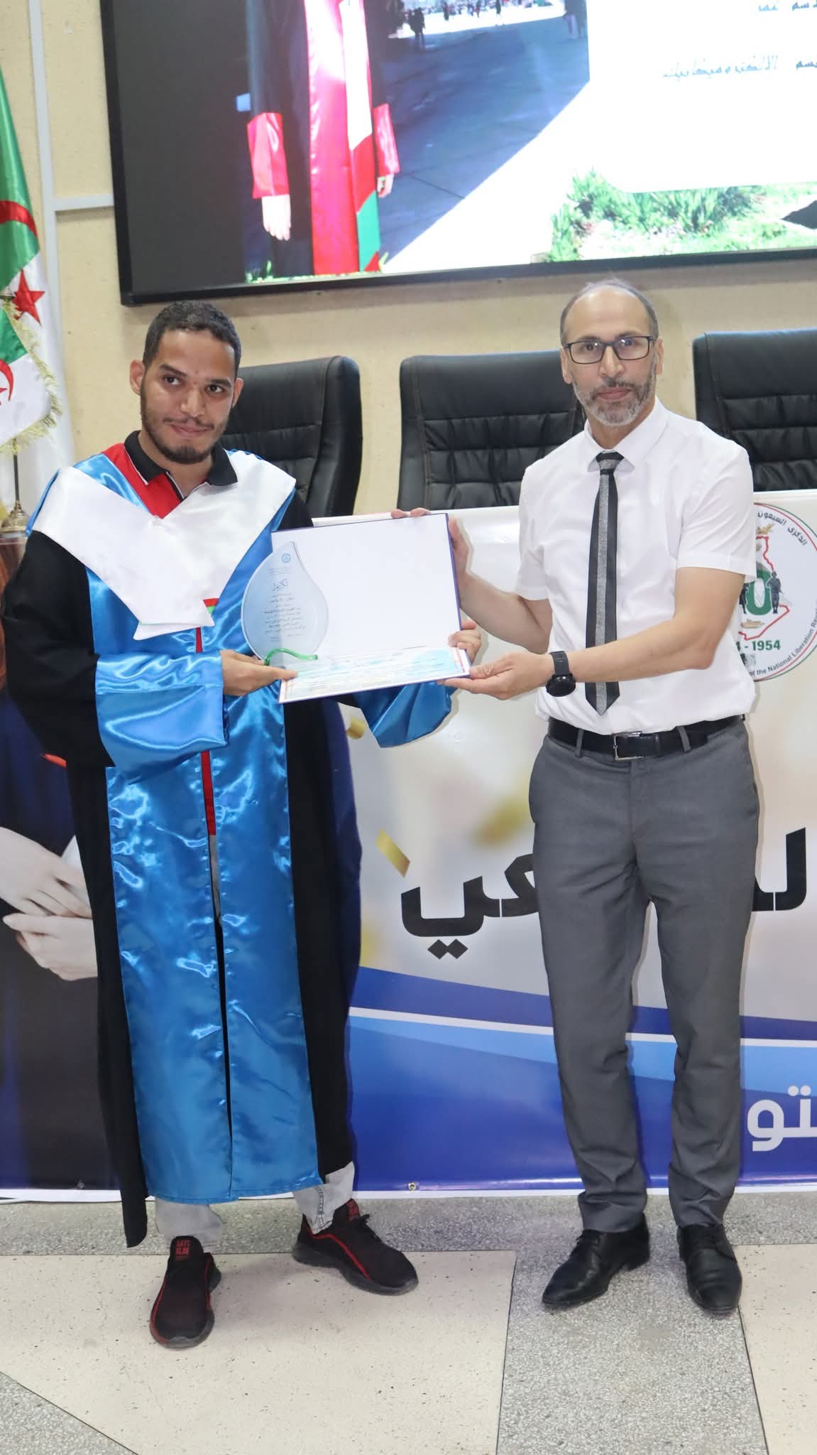 وقد تخلّل هذه المناسبة تكريم المتفوقين الأوائل في دفعات الليسانس والماستر وعلوم البيطرة، اعترافًا بمجهوداتهم وتفانيهم في مسيرتهم الدراسية. كما تمّ خلال الحفل تكريم ثلّة من الأساتذة الذين تمت ترقيتهم إلى رتبة أستاذ التعليم العالي، تثمينًا لمسارهم العلمي ومساهماتهم الأكاديمية.