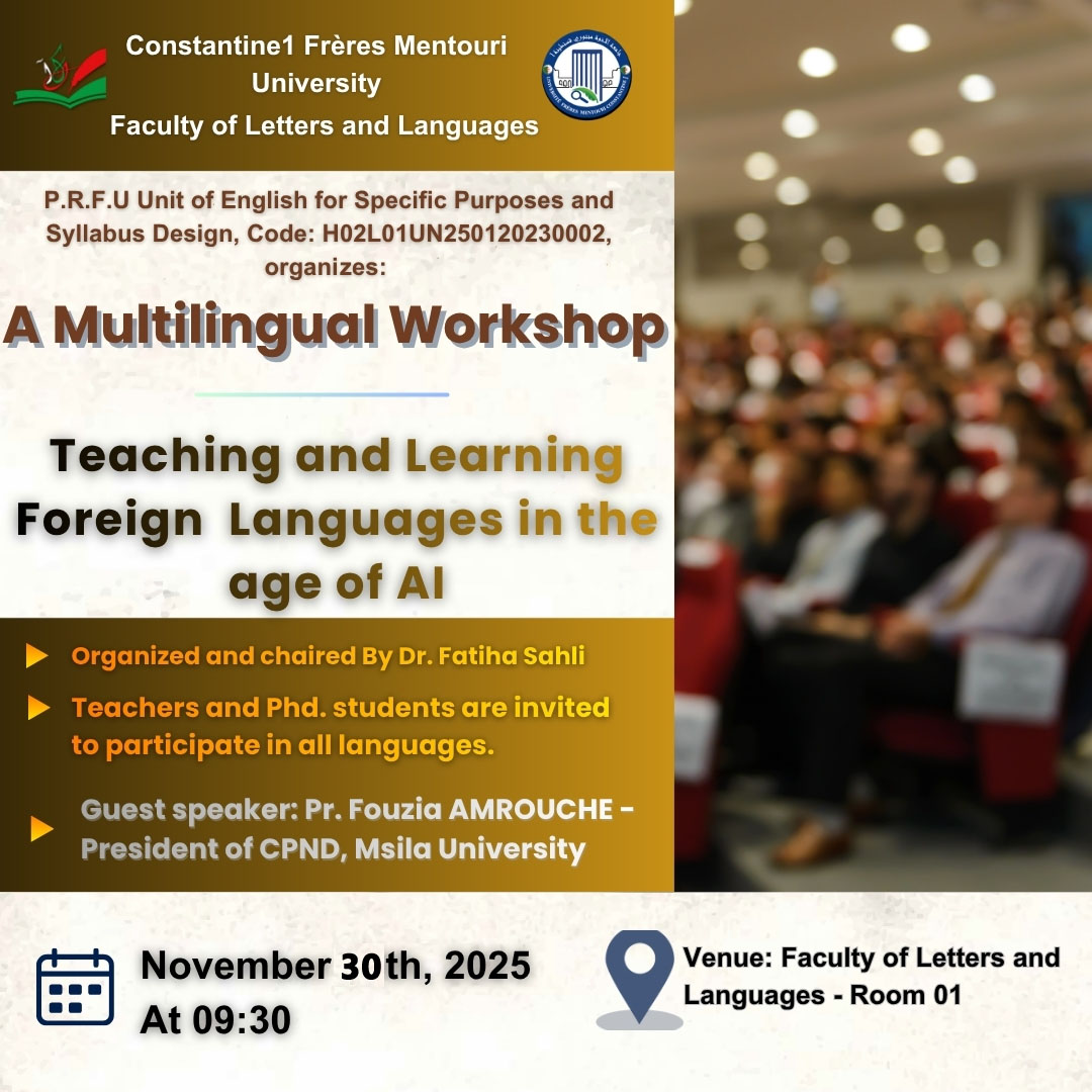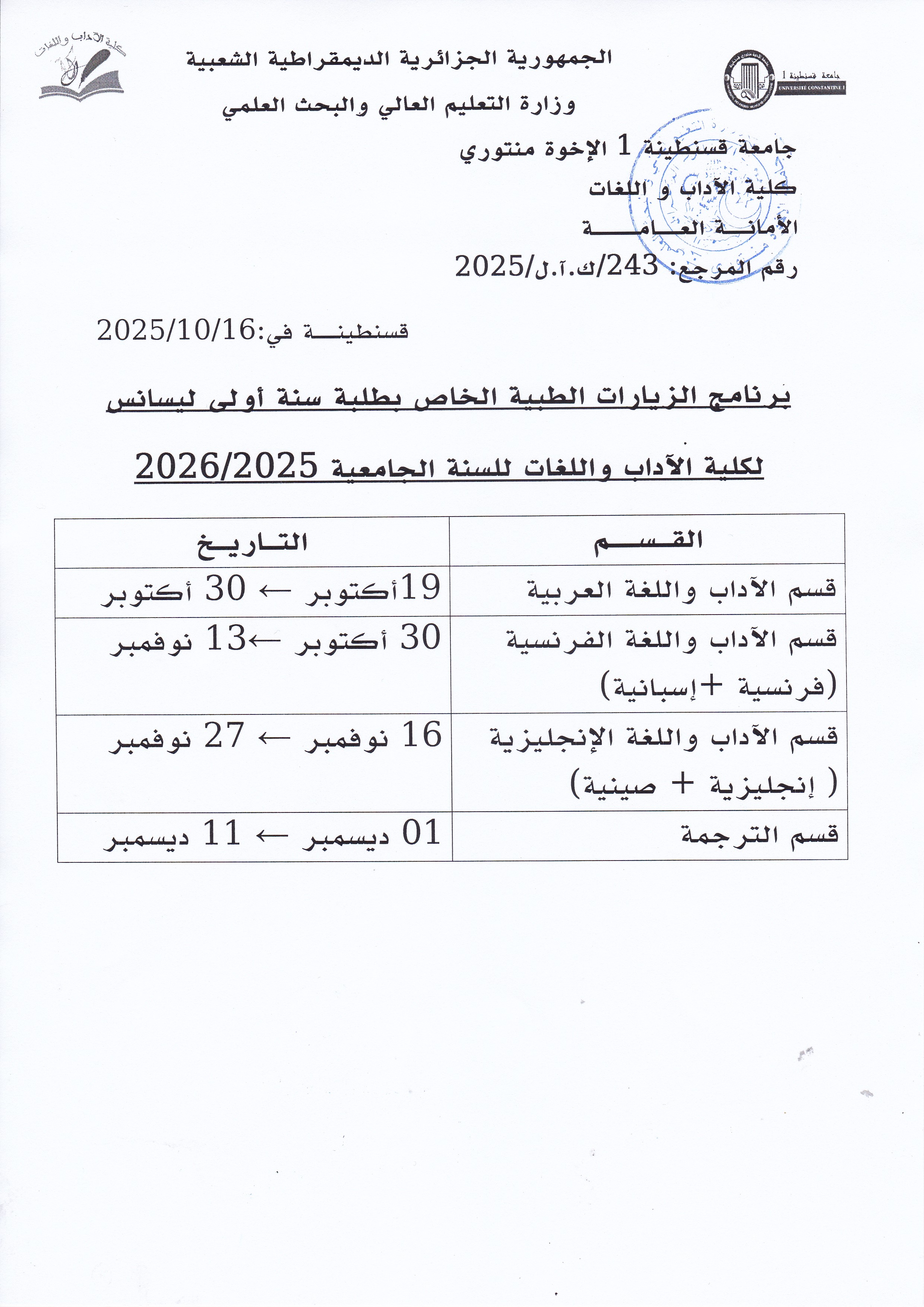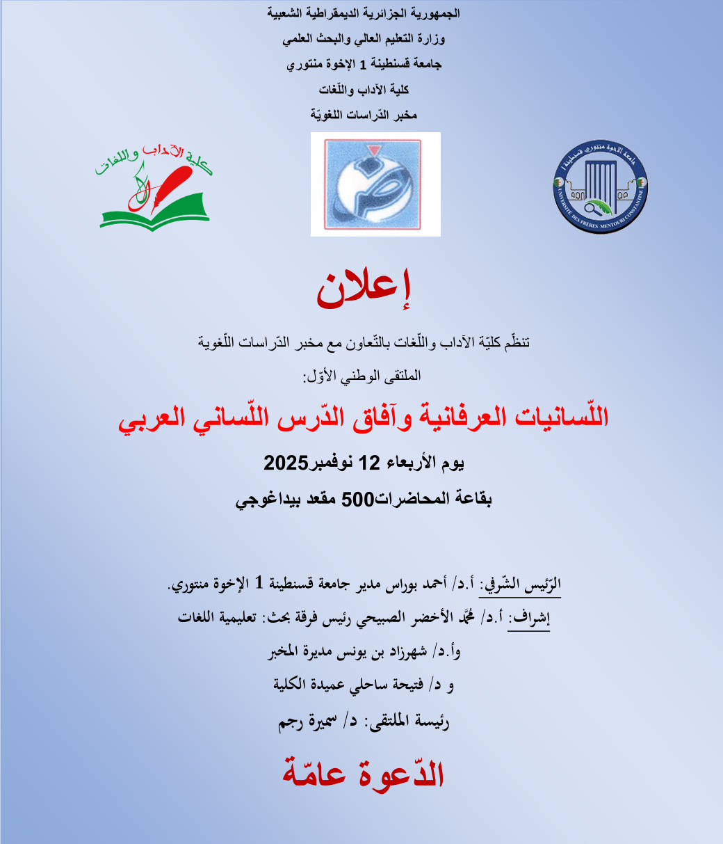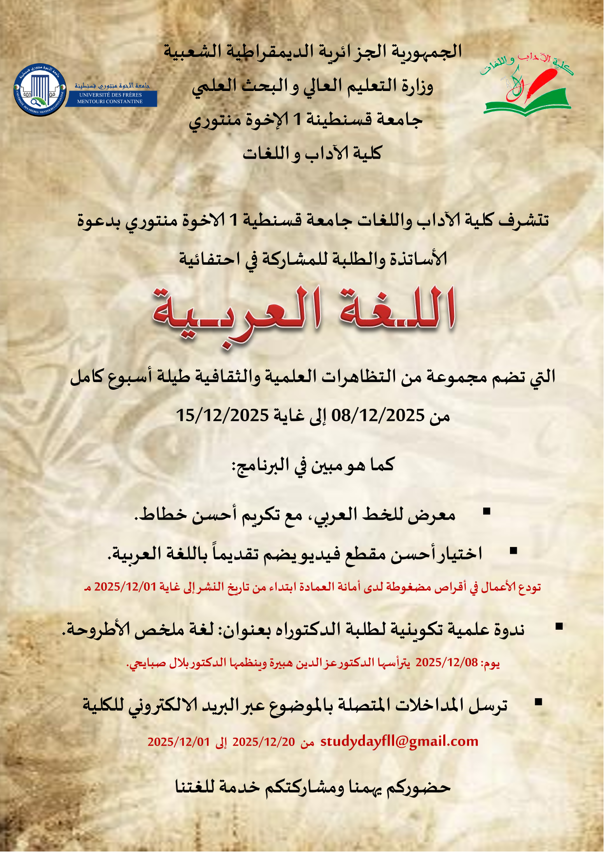 ينظم قسم الآداب و اللغة العربية لكلية الآداب و اللغات