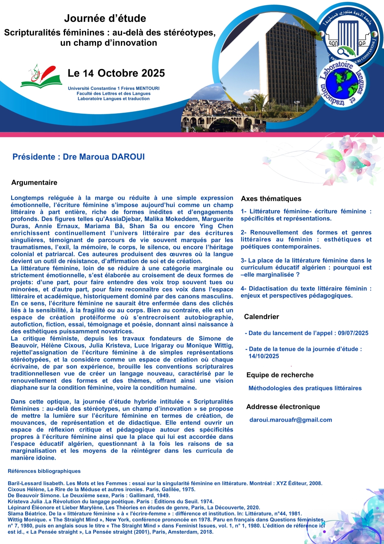 نّدوة علميّة لطلبة اللّيسانس والماستر نظام (ل م د) الموسومة: