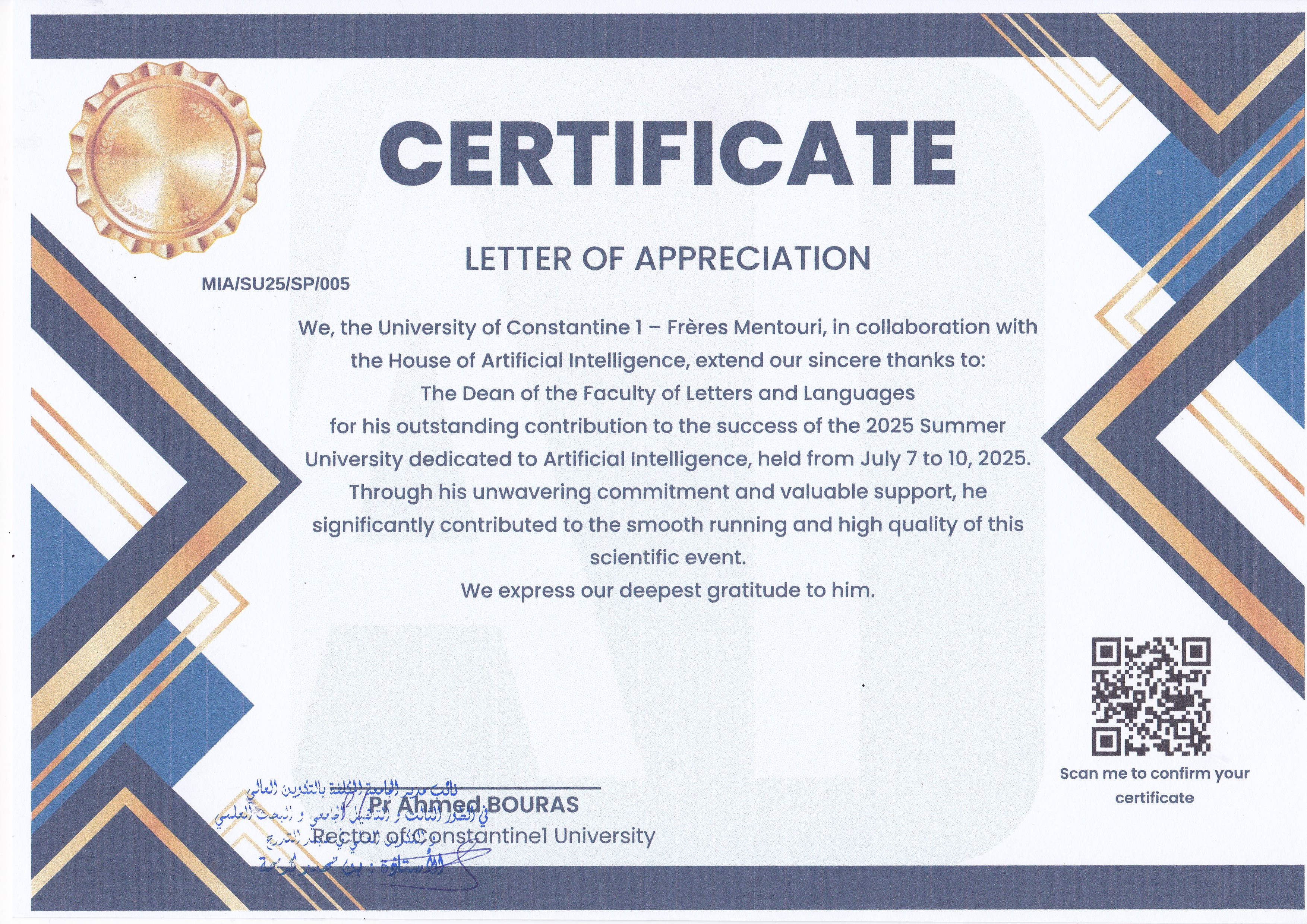 Contributions et Participation de la Faculté مشاركة كلية الآداب و اللغات في فعاليات الجامعة الصيفية للجامعة 2024-2025 مشاركة كلية الآداب و اللغات في فعاليات ملتقى الدكاء الإصطناعي