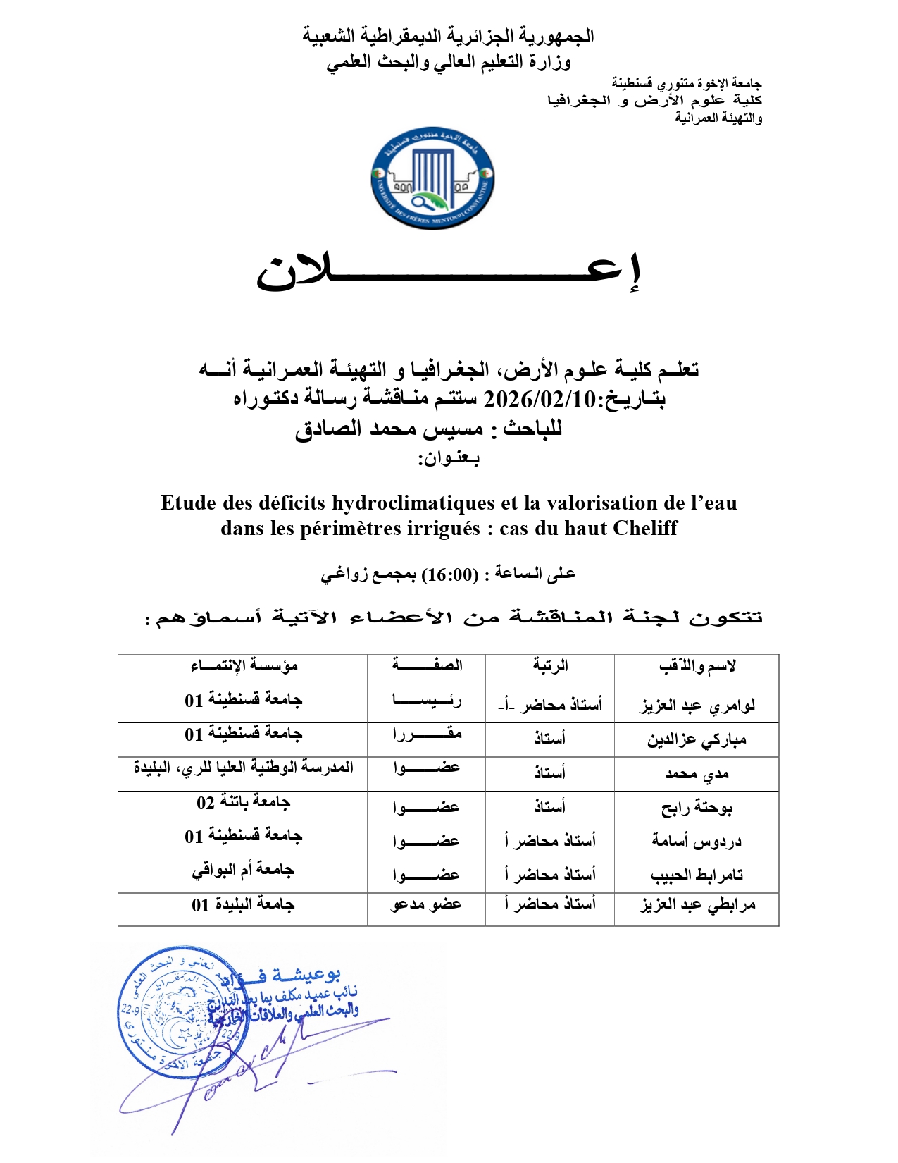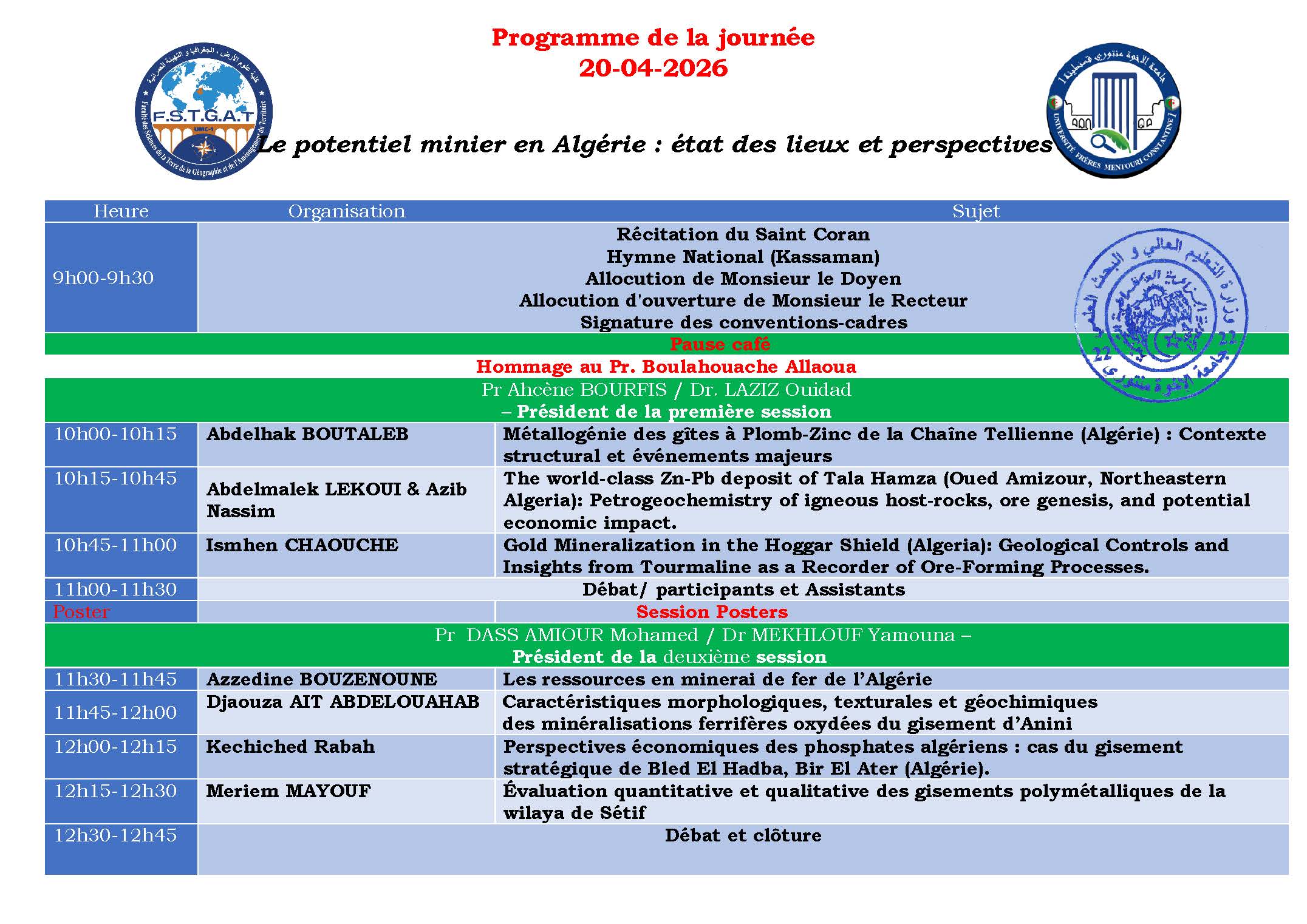 اختتمت يوم 12 نوفمبر 2024 فعاليات المؤتمر الدولي الاول المنظم من طرف كلية علوم الارض بالتعاون مع مركز تهيئة