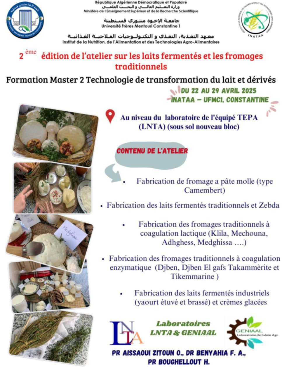 2ème édition de l'atelier sur les lais fermentés et les fromages traditionnels | Formation Master 2 Technologies de transformation du lait et dérivés