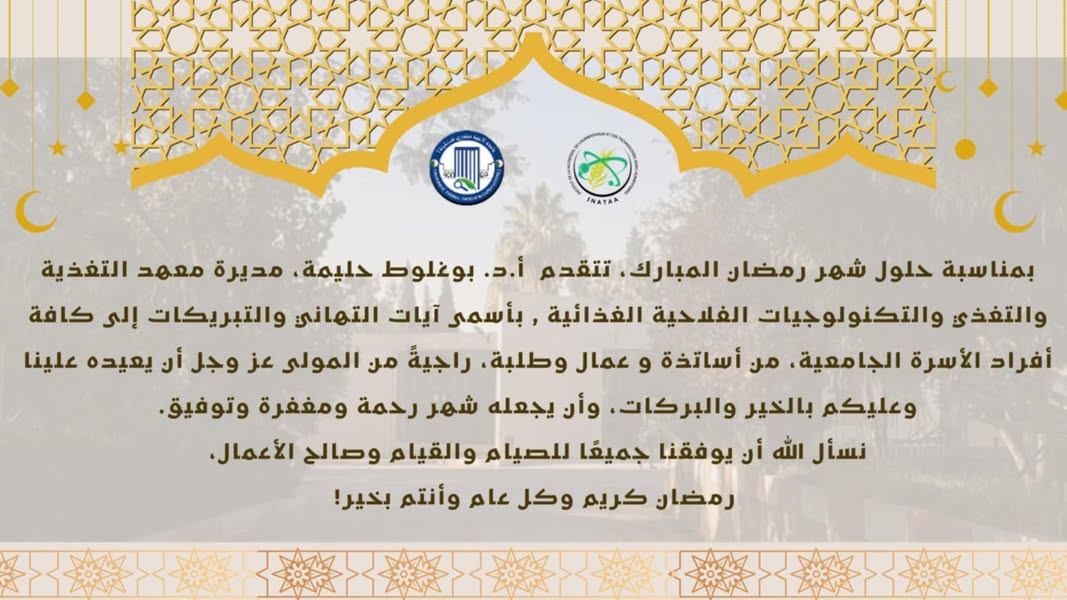 تهنئة مديرة المعهد البروفيسور بوغلوط حليمة بمناسبة حلول شهر رمضان المبارك