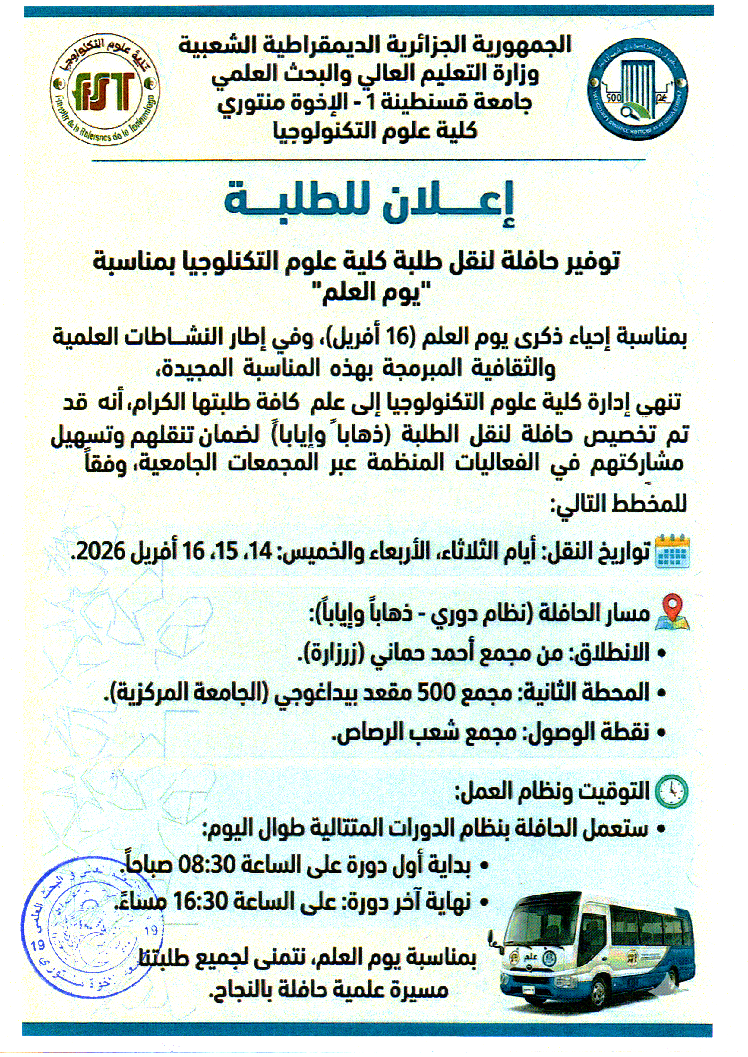 بسم الله الرحمن الرحيم، والصلاة والسلام على أشرف المرسلين، أبنائي الطلبة الاعزاء، زملائي الأساتذة، السيدات والسادة الموظفون، ــ ــ ــ ــ